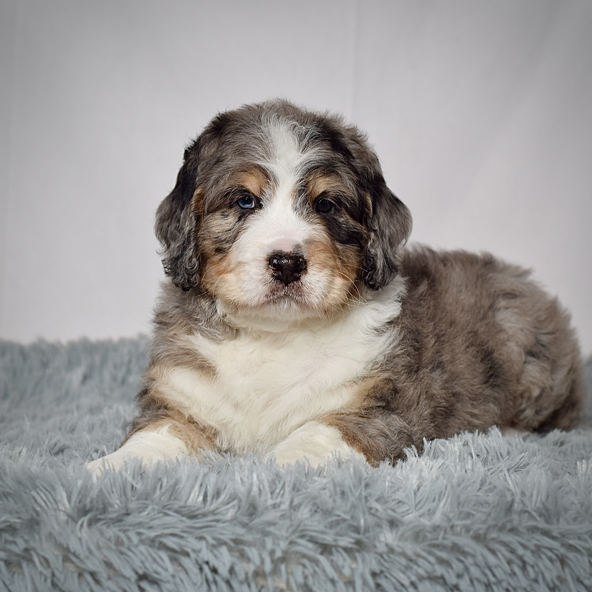 Introducing Mr. Sammy a standard Bernedoodle from Buddy and Candy. Call or text us today to reserve Him!