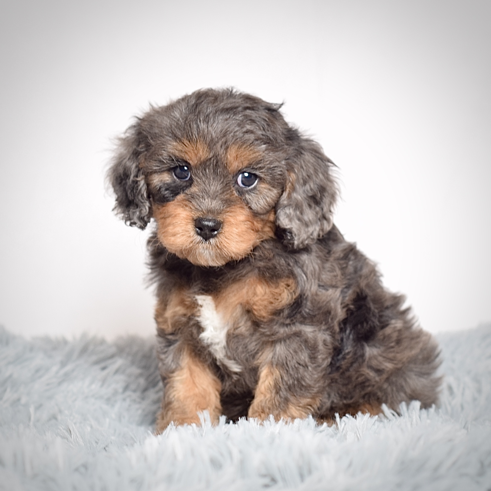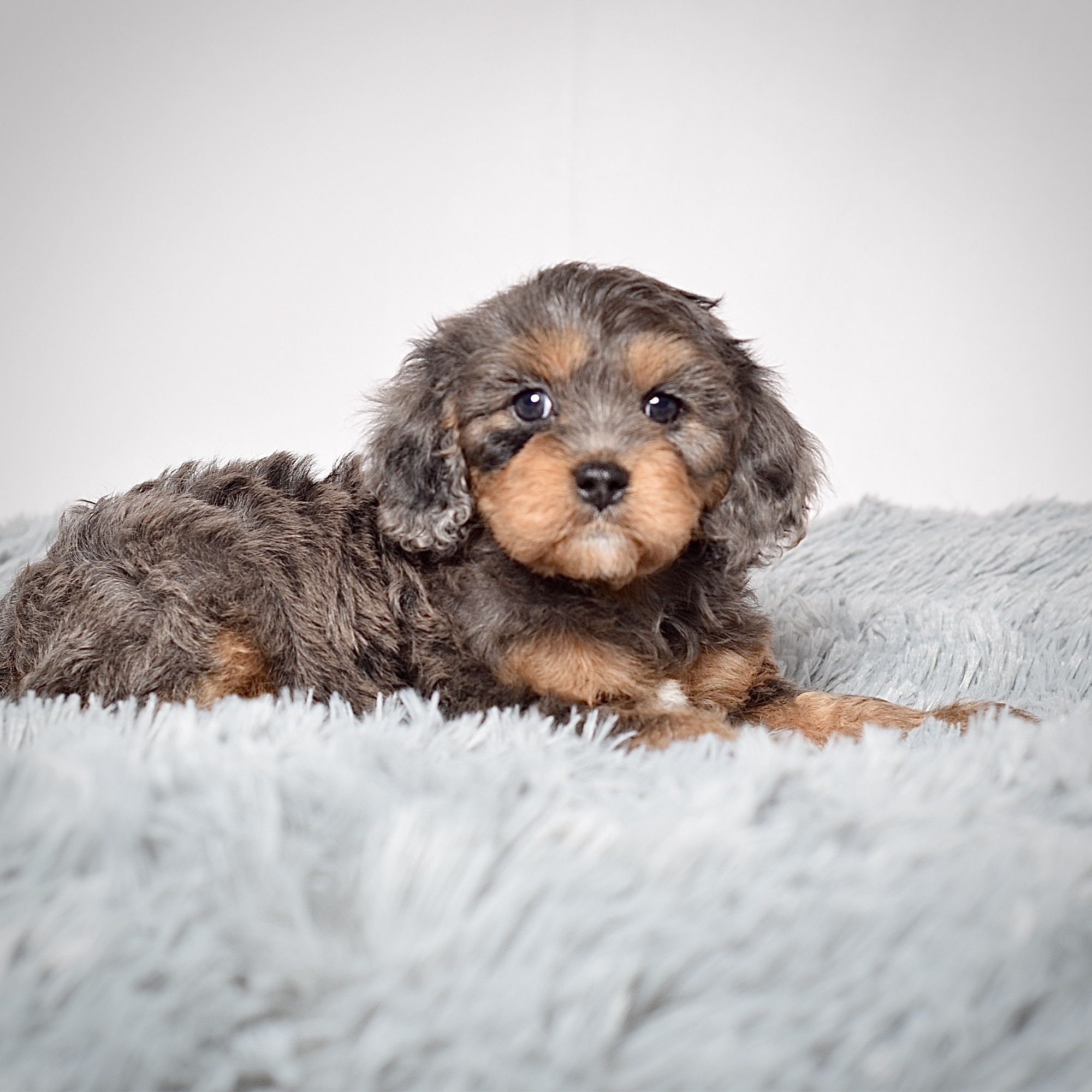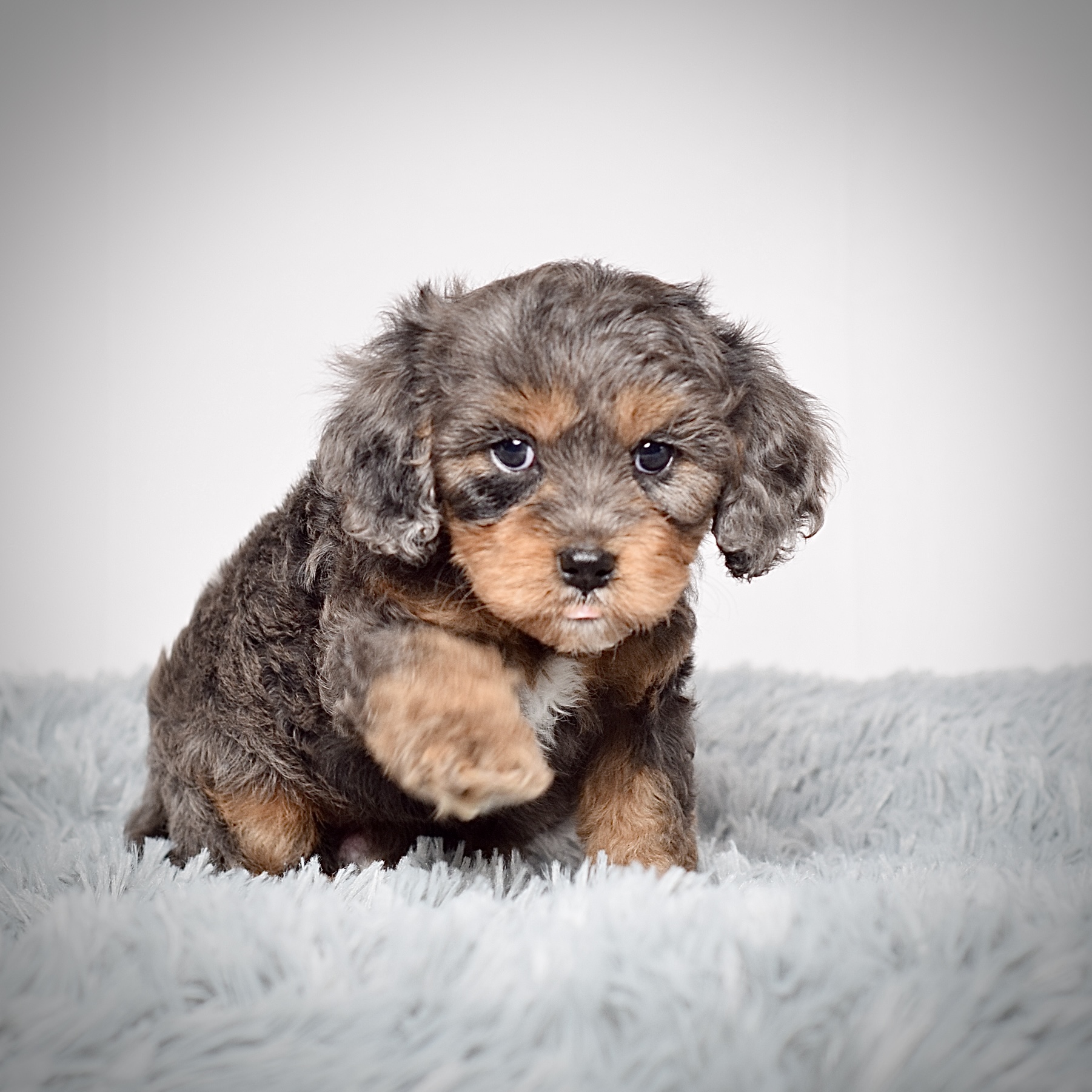 Meet this adorable Mini Cavapoo, a tiny bundle of joy with a delightful personality and a coat as soft as a cloud. Blending the intelligence and hypoallergenic traits of a Poodle with the friendly nature and stunning colors of a Cavalier King Charles, this pup is the perfect companion for any household. Mr. Antione promises endless love and happiness to those lucky enough to bring him home.
