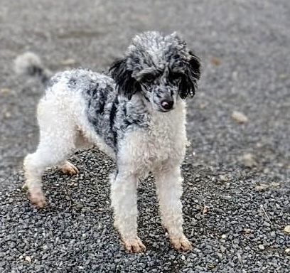 (Dad) Bennett is an AKC registered blue Merle parti mini poodle that weighs 12 pounds. He is Genetically tested and completely clear and healthy! He is very loyal and affectionate.