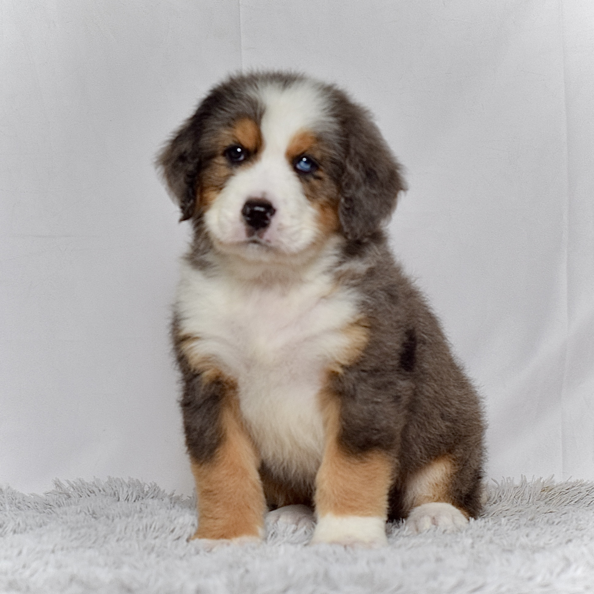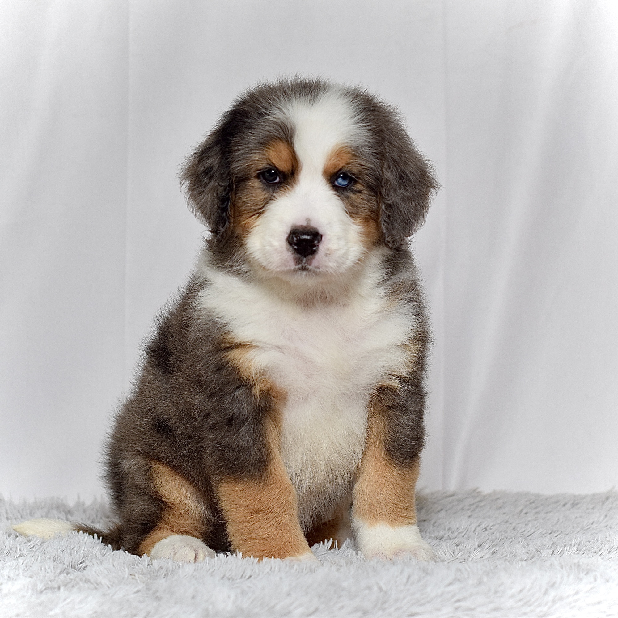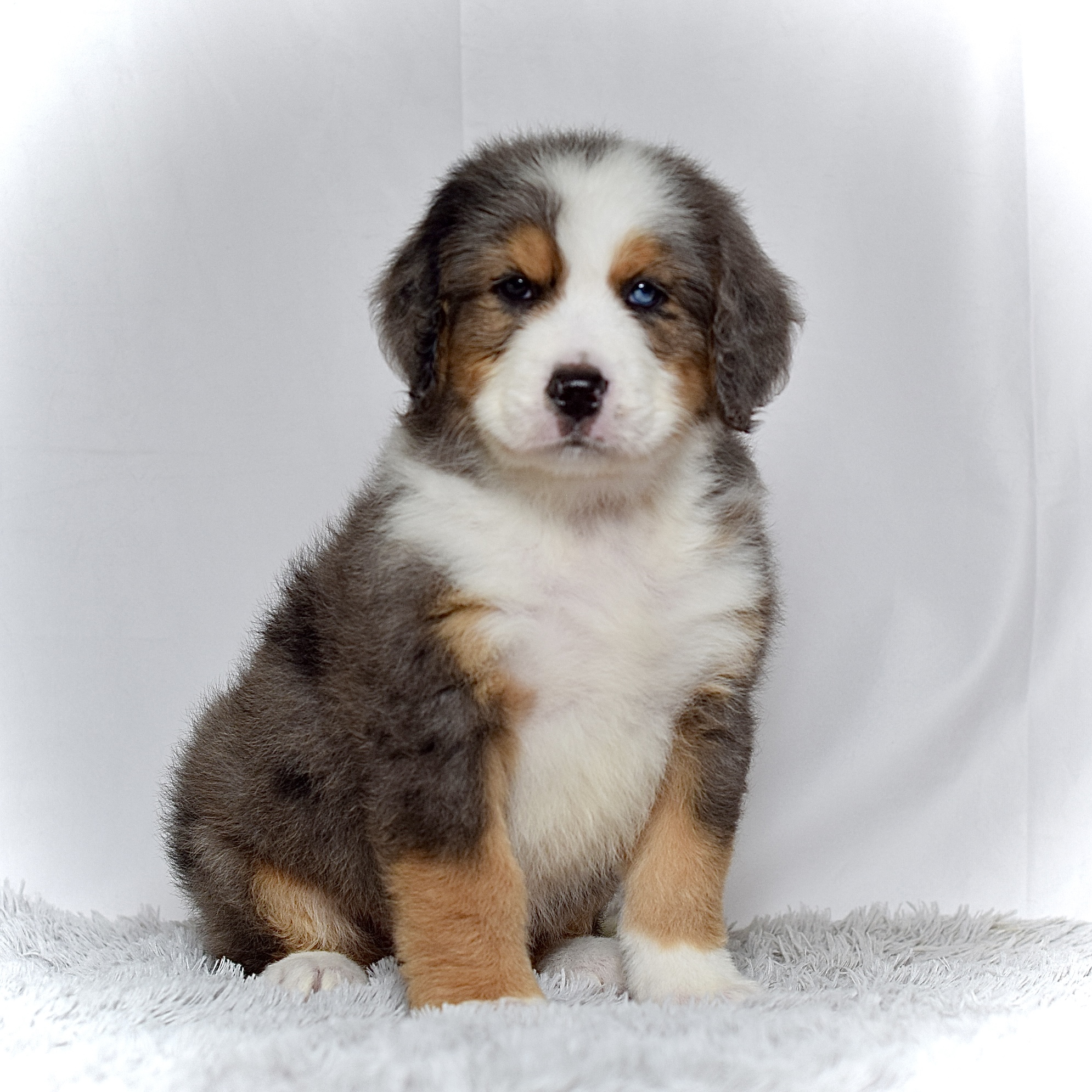 He is an absolutely gorgeous little fellow with a blue Merle tri colored coat.