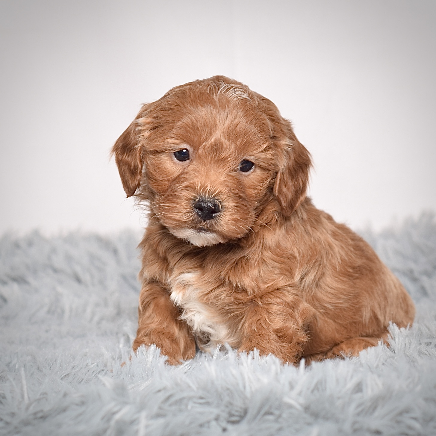 We are so excited to introduce you to our loving, playful F1b petite Goldendoodle puppies! All they know here at our family home is constant spoiling and love. Our children spend hours with them every day, romping around in the yard and giving them all the attention their little hearts could ever desire! Because of how socialized they are, they are perfectly friendly and well suited as companions for children of all ages. Tails wagging and paws bouncing, they have a way of wiggling into the hearts of everyone they meet. Their fun, contrasting colors are simply too cute to resist, along with those innocent, expressive puppy eyes looking into yours! They get their good looks from their parents
