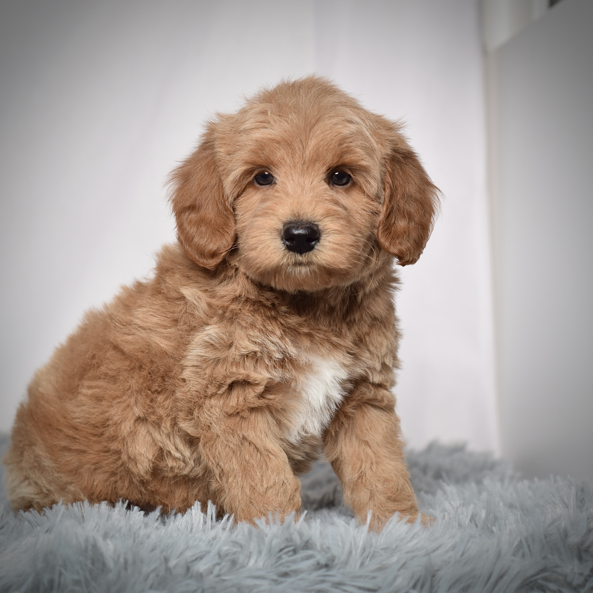 Meet this adorable Mini Goldendoodle , a tiny bundle of joy with a delightful personality and a coat as soft as a cloud. Blending the intelligence and hypoallergenic traits of a Poodle with the friendly nature and stunning colors of a golden retriever, this pup is the perfect companion for any household. Mr. Oscar promises endless love and happiness to those lucky enough to bring him home.