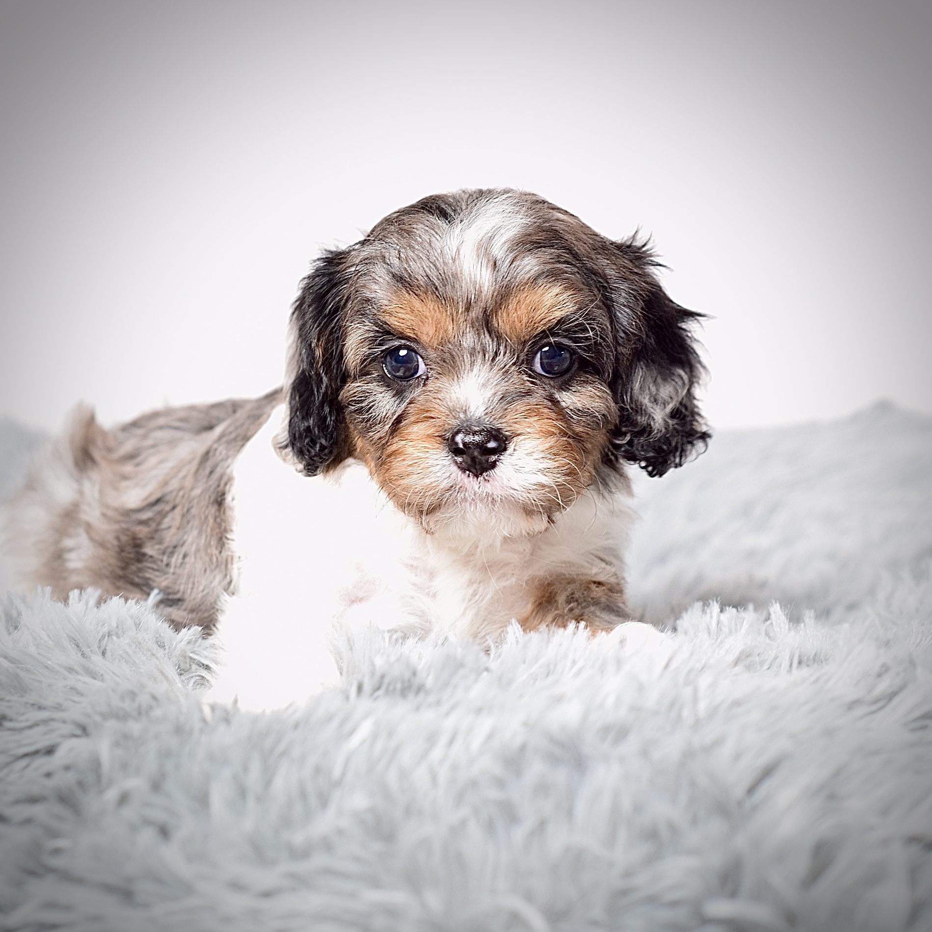 Meet this adorable Mini Cavapoo, a tiny bundle of joy with a delightful personality and a coat as soft as a cloud. Blending the intelligence and hypoallergenic traits of a Poodle with the friendly nature and stunning colors of a Cavalier King Charles, this pup is the perfect companion for any household. Ms Addie promises endless love and happiness to those lucky enough to bring her home.