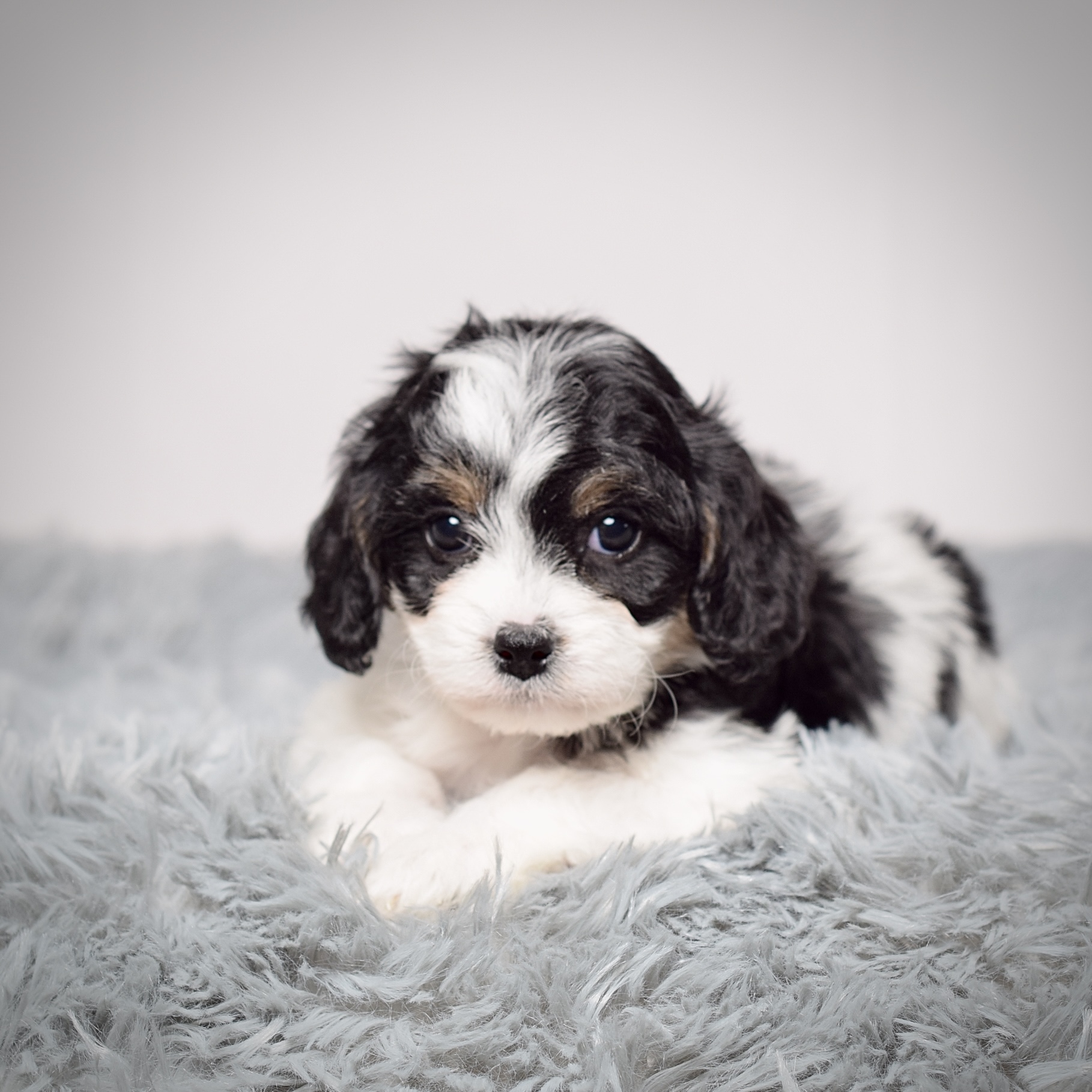 Mom) Sapphire is an AKC registered Cavalier King Charles Spaniel that weighs 15 pounds with a gorgeous tri color and soft and fluffy coat. She is a wonderful mother and has a very sweet temperament.