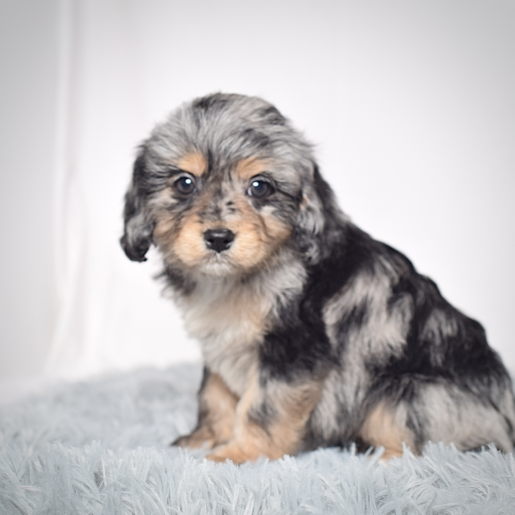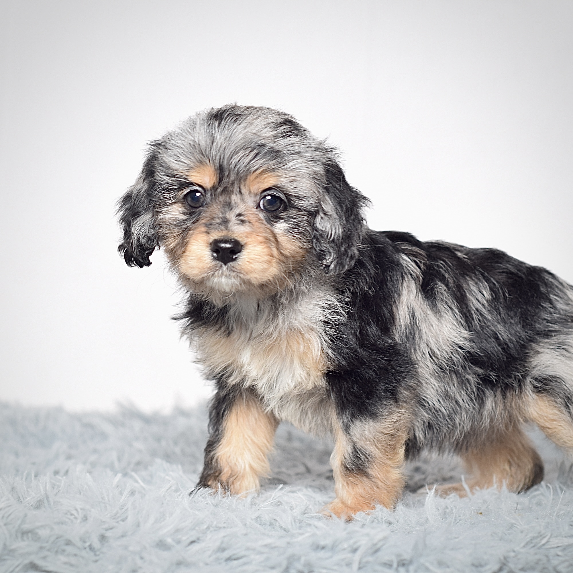 Meet this adorable Mini Cavapoo, a tiny bundle of joy with a delightful personality and a coat as soft as a cloud. Blending the intelligence and hypoallergenic traits of a Poodle with the friendly nature and stunning colors of a Cavalier King Charles, this pup is the perfect companion for any household. Ms. Bonnie promises endless love and happiness to those lucky enough to bring her home.